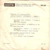 | I страна ЗА ОБИЧ СЬМ РОДЕНА • Т. Русев, Д. Дамянов Изп. Лили Иванова ПТИЦИТЕ РАЗКАЗВАТ • А. Заберски, Д. Ценов Изп. Йорд. Христова II страна ЗАКЪСНЕЛИ СРЕЩИ • П. Ступел, П. Караангов Изп. Мария Нейкова и Георги Минчев МОЯ СОФИЯ • Дим. Вълчев, Вл. Голев Изп. Борис Гуджунов Съпр. СЕОБРТ, дир. В. Казасян |