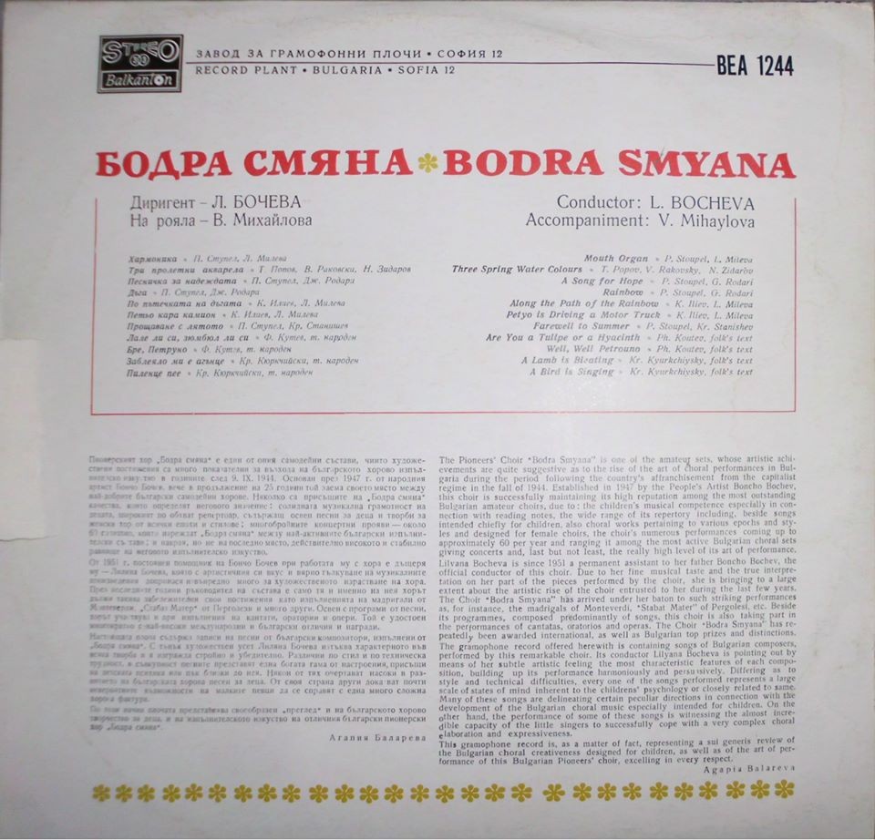 Диригент Лилияна Бочева. На рояла В. Михайлова