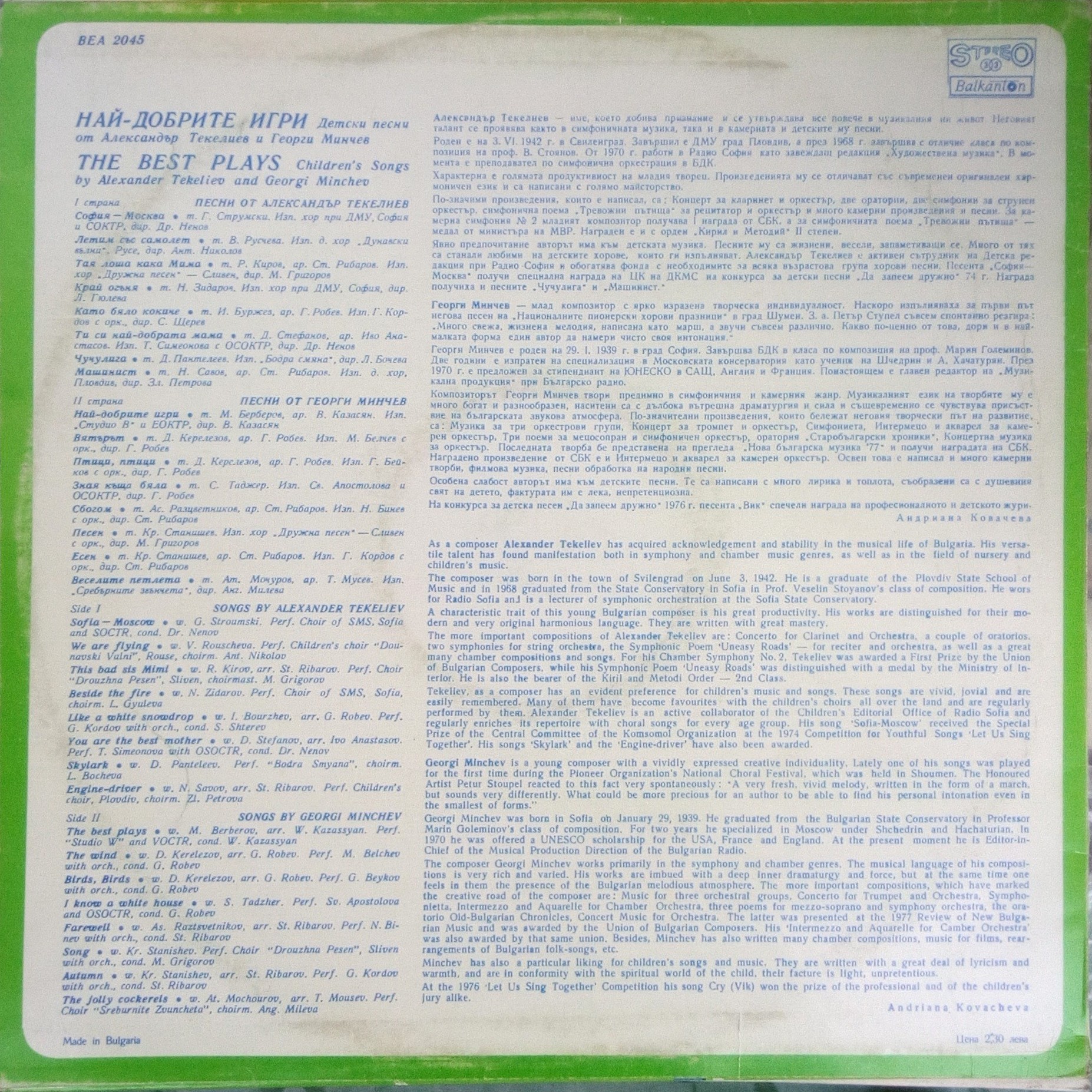 1 страна. Песни от Александър Текелиев