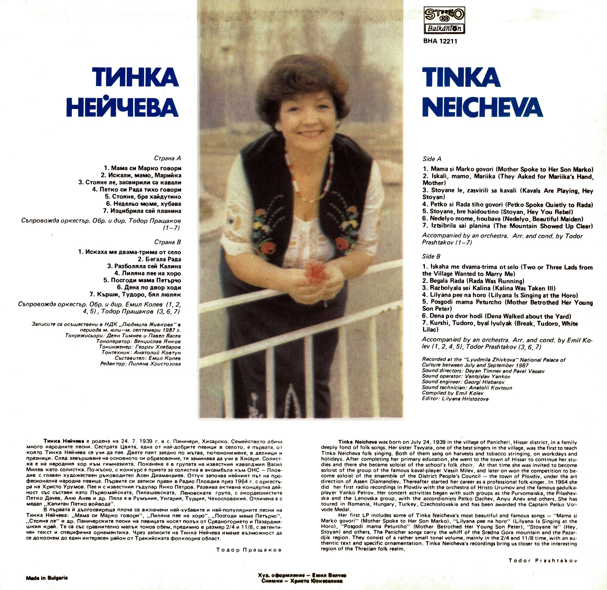 Съпровожда оркестър, обработка и диригенти Тодор Пращаков (3, 6, 7) и Емил Колев (1, 2, 4, 5)