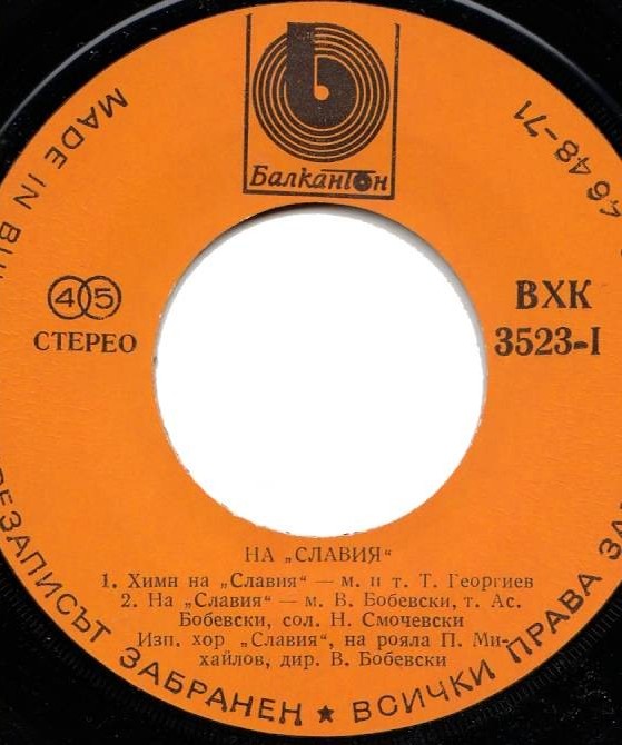 Изп. хор "Славия", на рояла П. Михайлов, дир. В. Бобевски