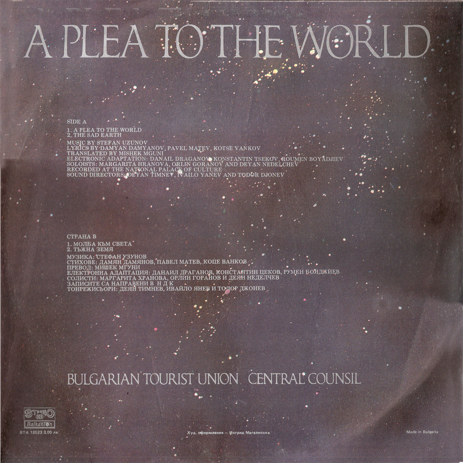 Lyrics by Damyan Damyanov, Pavel Matev, Kotse Vankov. Translated by Mishek Mguni. Electronic adaptation : Danail Draganov, Konstantin Tsekov, Roumen Boyadjiev. Soloists : Margarita Hranova, Orlin Goranov and Deyan Nedelchev