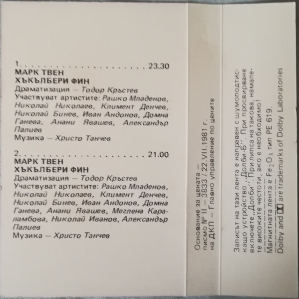 Участвуват артистите: Рашко Младенов, Николай Николаев, Климент Денчев, Николай Бинев, Иван Андонов, Домна Ганева, Анани Явашев, Меглена Караламбова, Николай Иванов, Александър Палиев